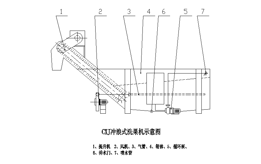 冲浪式洗果机是以风机风力使水产生强烈搅拌运动,使物料在水中翻滚,同时安置在进料口的高压水管喷头将物料用水力推向提升机方向,经茄子短视频的茄子视频黄色APP由提升机输入下道工序。